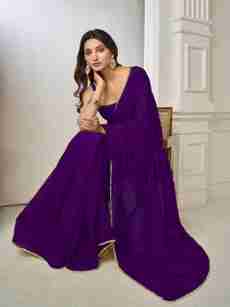 hanumant handwork Solid/Plain Bollywood Georgette Saree (Purple)