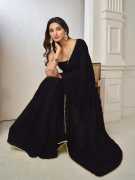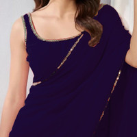 hanumant handwork Solid/Plain Bollywood Georgette Saree (Dark Blue)