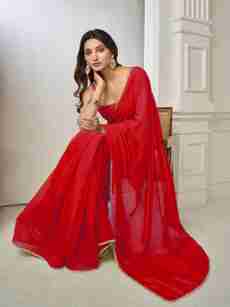 drashti trading Solid/Plain, Embellished Bollywood Georgette Saree Red