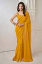 women's stylish yellow colour plain pure fox georgette fabrics saree with very attractive mirror lace in saree for wedding event party to very comfortable and very fashionable .