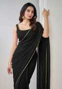 Solid saree with contrast border, Gold details, Zari border, Night Party, Occasional Sari/Party Sari