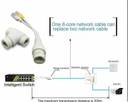 HANUTECH PoE Multiplexer 2-in-1 Network Cabling Connector Three-Way RJ45 Connector 2 Ports 100 Mbps Fully Managed Network Switch (White)