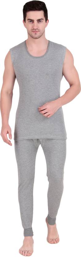 HAP KINGS brings you the finest cold weather underwear for Men. Made with a unique combination of polyfill sandwiched between layers of combed cotton, it keep you warm and comfortable. These quilted thermals are designed to give a contoured snug fit and can be worn both as innerwear or outwear under any out fit .The snug fit keeps you insulated and warm . This Package contains a Mega/ Sleeveless thermal top and elasticized trouser.Slim/ Body fitting to keep you warm & cosy in chilly winters Stylish deep round shaped neck-line and charcoal grey color for great look . Shaped to fit, super comfortable waistband and spandex cuff at ankles for 'no sag' fit . XS-75CM || S-80CM || M-85CM || L-90CM || XL-95CM || XXL-100CM || 3XL-105CM || 4XL-110CM Material Composition: Cotton, Polyester Viscose, melange grey colored