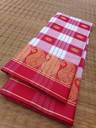 Happy Creation Checkered, Paisley, Woven Tant Handloom Cotton Blend Saree (Red, White)