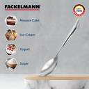 The capacity of a dessert spoon is usually about two teaspoons; this large capacity is useful when eating layered and complex desserts, as it ensures that a bit of every flavour can gracefully fit into each bite. The spoons maintain a good balance between their weight and size. The ergonomic design of the dessert spoon makes the grip more comfortable and allows you to have a better dining experience. Use only soap or detergent and a soft sponge to wash the dessert spoon set. Other products such as steel wool can scratch or damage the cutlery shine. When using a dishwasher, we recommend removing the cutlery as soon as the rinse cycle is finished and dry them by hand.