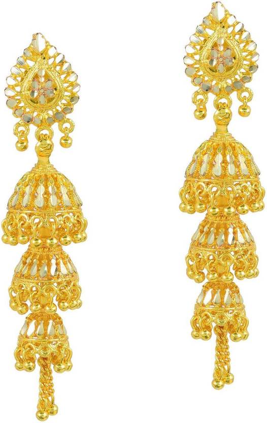Happy Stoning Gold plated three layered Partywear/Bridal Jhumka Earrings Alloy Jhumki Earring