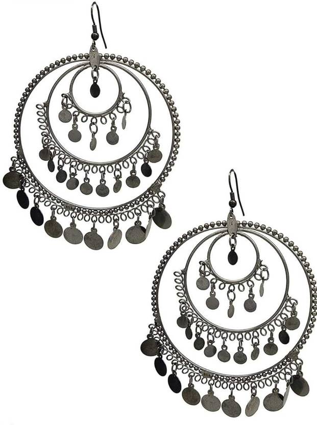 Janpreya Oxdized Multi Layered Silver Big Size Hoop Earring For Girls. Brass Hoop Earring