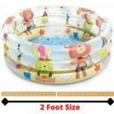 Product Material Quality and Non-Toxic Material: The product has very high quality with a proper grip at the bottom of the product. Blue Soft and wavy shapes make it so comfortable for your child. Look at its corners. They are not sharp and your baby can not get hearted any time. Painted free standing: It has a free-standing option and does not require any support. Filled air makes it easy to stand on the ground. the product is painted with cartoon print with high-quality material. Easy to fill the air: The baby bathtub comes without Air Pump - NO AIR PUMP. The product is made from soft material and does not require much effort to fill the air. Its air-filling capacity and anti-air slipping buttons make it easy to hold air for a long time without any leakage. 2 Feet in Size (24 Inches): Small 2 Feet Size perfect for a child age 30 Months. Age of 0 to 30 Months are easily fit in this bathtub Small Size Large Fun: Cool Summer ahead for your kids