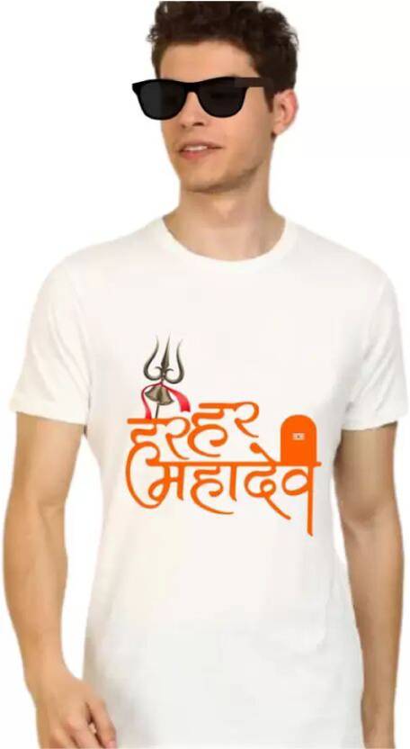 Men Printed, Typography Round Neck Polyester White T-Shirt