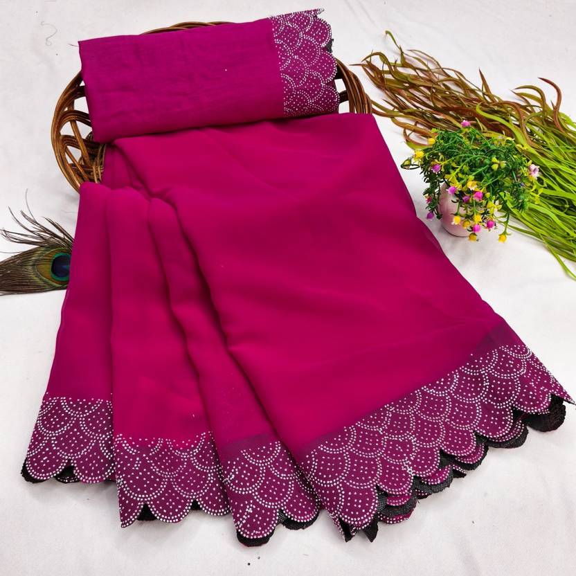 Harani Solid/Plain, Embellished Bollywood Georgette Saree (Pink, Magenta)