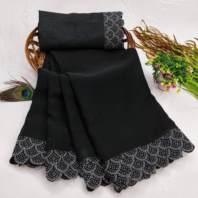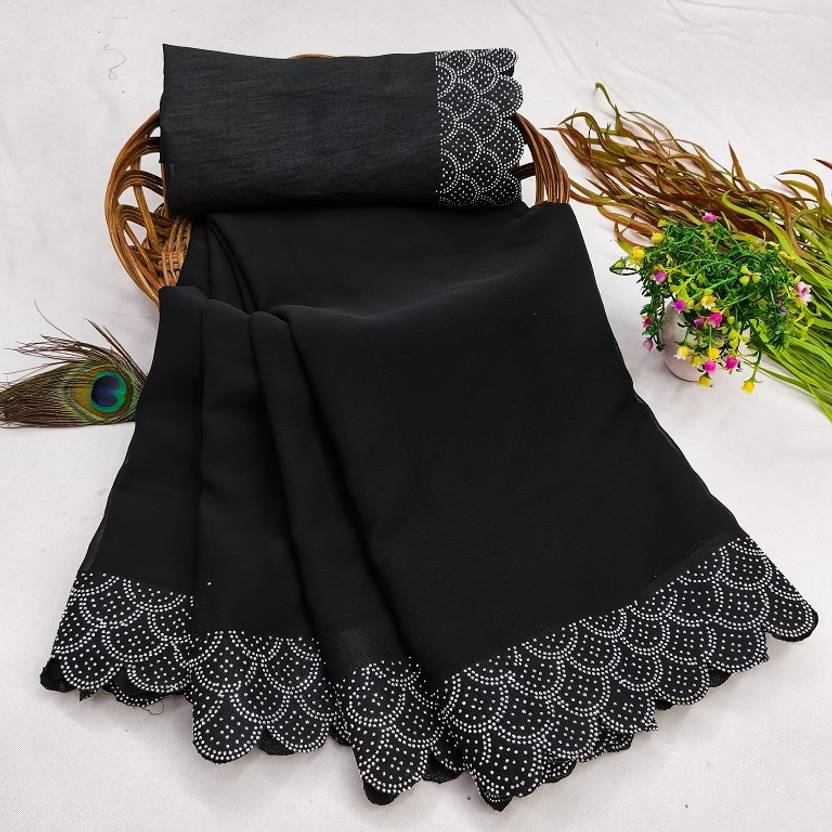 Harani Solid/Plain, Embellished Bollywood Georgette Saree (Black)