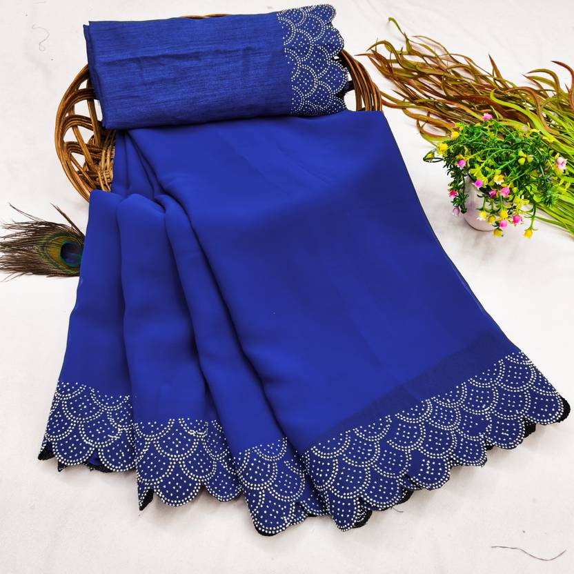 Harani Solid/Plain, Embellished Bollywood Georgette Saree (Blue)