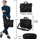 Total 5 Compartments : 2 Main, 2 outer & 1 Inner Compartments .Inside main compatment 1 laptop slots with thick padding to prevent laptop from any kind of external pressure. It also has seperate slots for storing pen, mobile, wallets and other accessories. On Backside there is a trolley strap to hold the bag & it helps travellers to move their arm free on business trip.External dimensions: L 15.5" x H 11.5" x W 4.5" inches| producer: Hard Craft| suitable for 15.6 inches laptops (38.7 x 25.9 cm) | Also suitable as case for 16 inch Pro. There might be minor color variation between actual product and image on screen due to photography effect and monitor/mobile resolution.