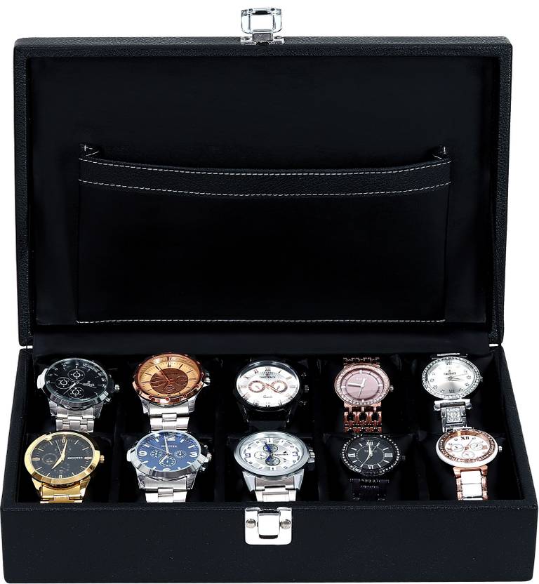 Hard Craft Storage Organizer For Men & Women Hand Crafted in High Quality Leather Watch Box (Black, Holds 10 Watches)