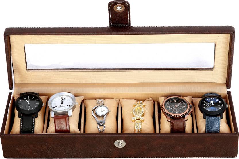 Hard Craft Storage Organizer For Men & Women Hand Crafted in High Quality Leather Watch Box (Brown, Holds 6 Watches)