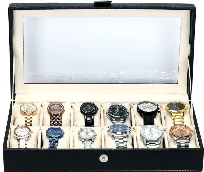 12 Compartments For Storing Watches, other jewelleries,etc, Transparent Lid on Top to provide glance on your time pieces