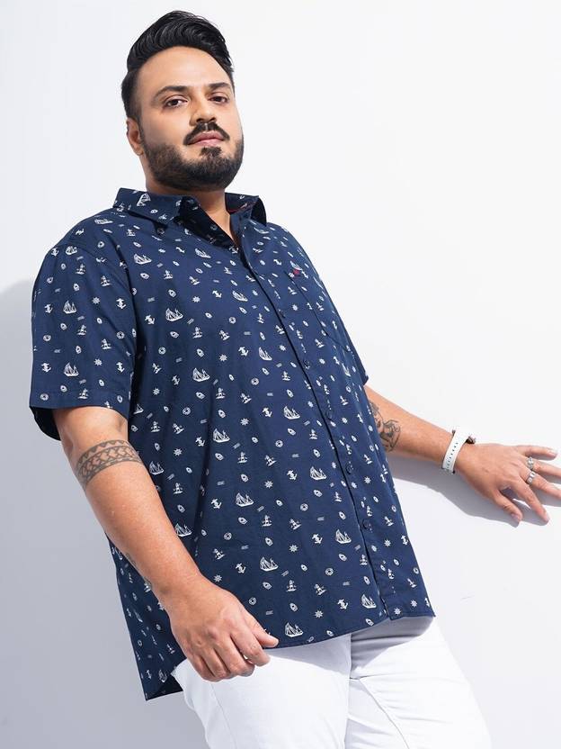 Hardsoda Men Printed Casual White, Dark Blue Shirt