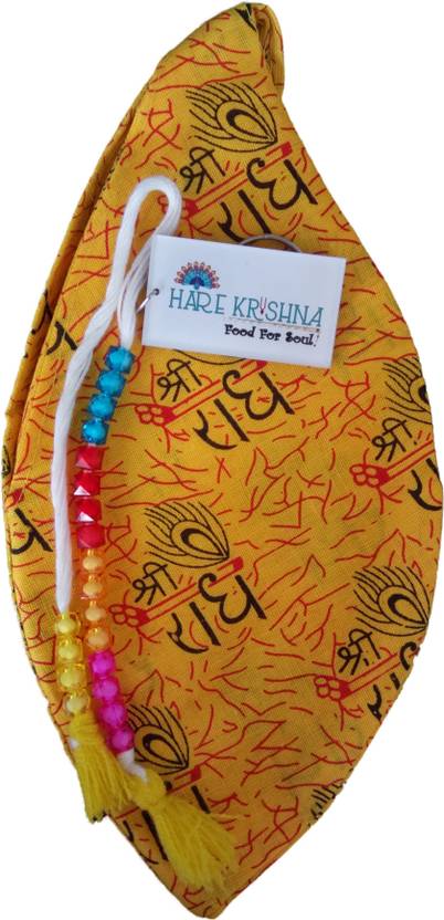 Hare Krishna Food For Soul Shri Radhe Printed Bead Bag for Chanting-Jaap Mala Bag Potli