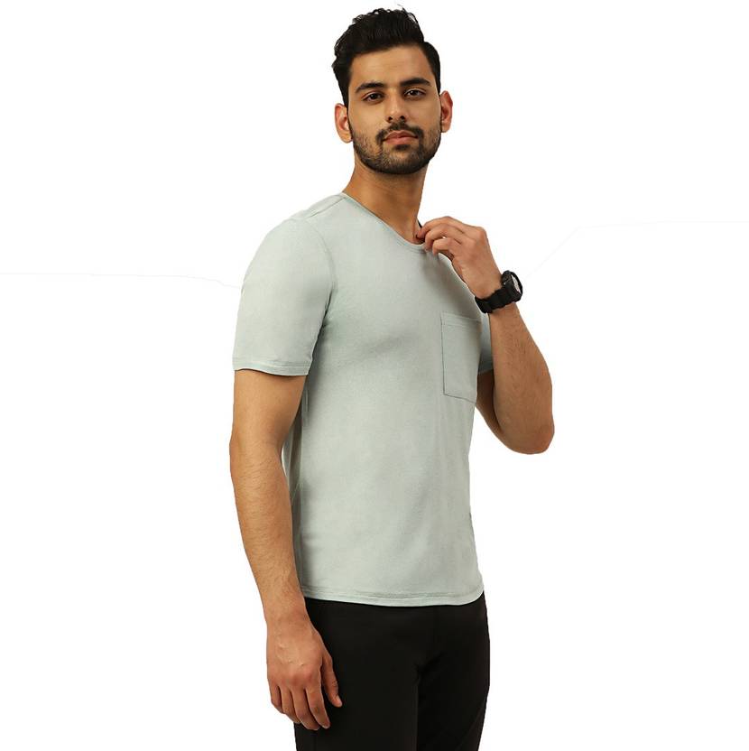 Harfun Men Solid Crew Neck Polyester Light Green T-Shirt
