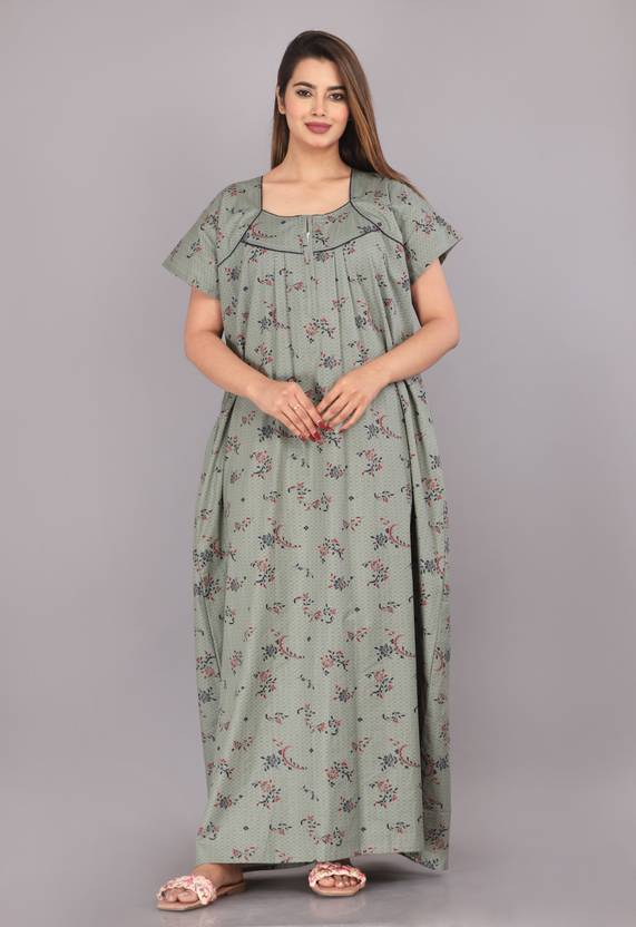 floral print which is evergreen, light colors of this catalogue are suitable for this summers as they are cool and best for summers, LOOSE FIT OR RELAXED FIT FOR COMFORT, cotton fabric suitable for summers, Easy Care: This nightgown is effortless to take care of, so you can be sure it will remain pristine wash after wash.