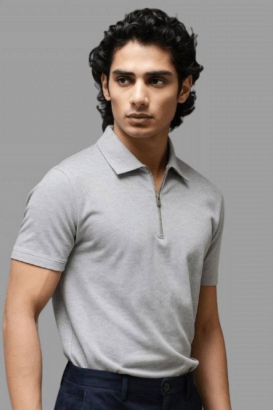 Men Solid Zip Ne...