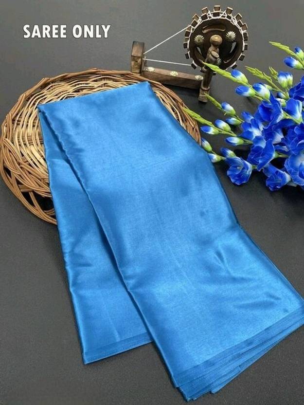 Hari Om Solid/Plain Bollywood Pure Silk, Satin Saree (Blue)