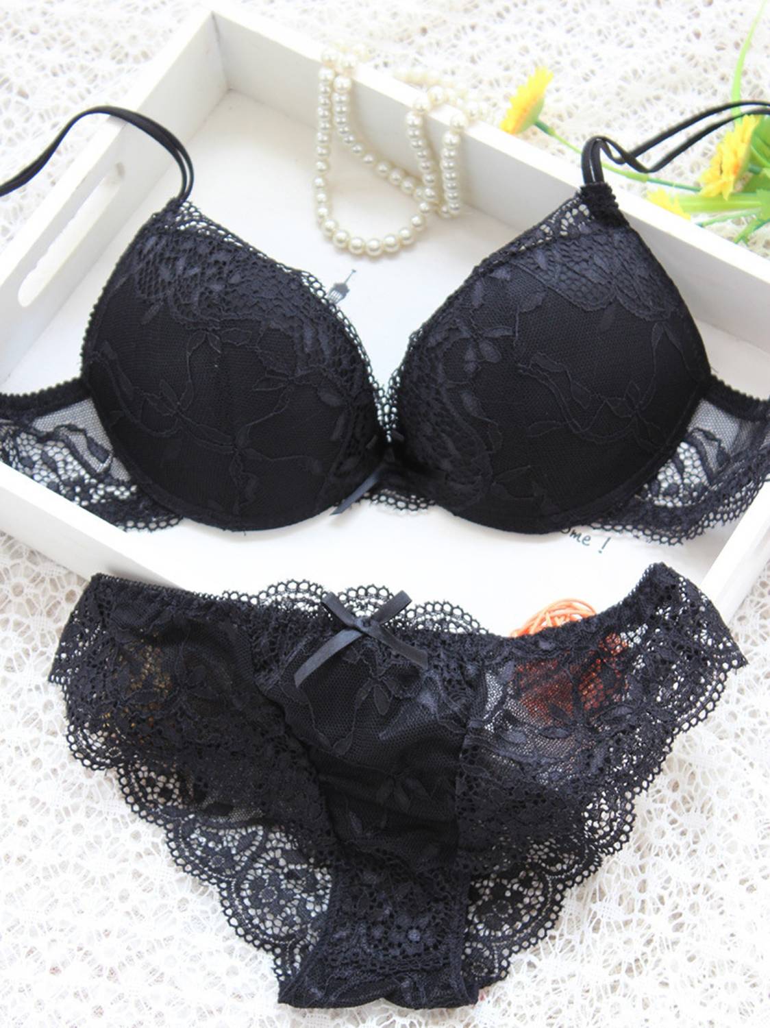 Secret Wear presents to you a Pretty-Sleek Gorgeous bra & panty set which is essential for all the lovely brides. It comes in trendy style. Crafted out of soft lace fabric to keep you beautiful, sexy, and comfortable .The bikini has two tipsy straps at both the sides .This innovative, non -padded bra & panty set is designed to give it the chic quotient .You can flaunt it under a loose shirt or a sheer tee. Be romantic ladies.NOTE :The final product delivered might vary Lace Patterns from the one displayed here as products are procured in batches. The overall pattern of the product remains same. The color may seem to vary due to photo graphic lights & monitor display settings