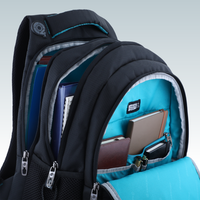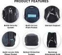 Detailed Organizer, Bottom Protection Studs, Dedicated soft padded Laptop Compartment, Ergo Grip Backstraps, Bottle Security System, Sternum Support System, and Elevated Laptop Compartment that prevents it from touching the ground.