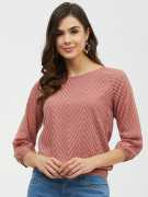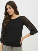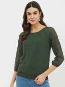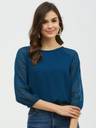 HARPA Casual 3/4 Sleeve Solid Women Blue Top
