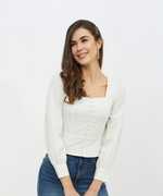 HARPA Casual 3/4 Sleeve Solid Women White Top