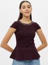 Maroon regular peplum top Solid Round neck, short, regular sleeves Studded