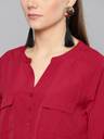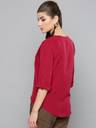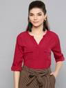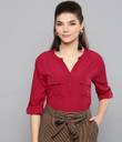 HARPA Casual Roll-up Sleeve Solid Women Red Top