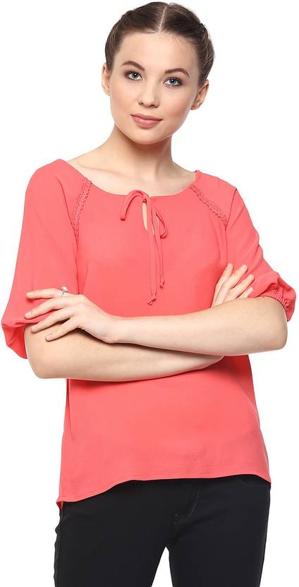 HARPA Casual Short Sleeve Solid Women Light Green Top