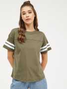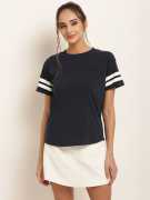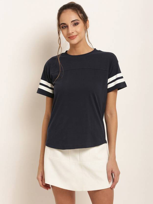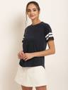 HARPA Colorblock Women Round Neck Dark Blue T-Shirt