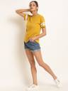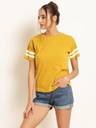 HARPA Colorblock Women Round Neck Yellow T-Shirt
