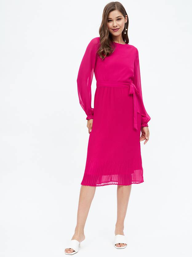 Featuring a Solid Pattern Round Neck A-Line Dress that comes along with Regular Sleeves Which gives you an Elegant and Stunning look.