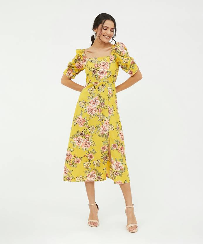 HARPA Women A-line Yellow Midi/Calf Length Dress