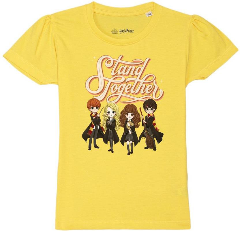 Harry Potter by Wear Your Mind Girls Printed Pure Cotton Regular T Shirt (Yellow, Pack of 1)