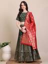 Harshiv Textile Self Design Semi Stitched Lehenga Choli (Green, Red)