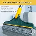 The V-shaped bathroom brush head is equipped with sturdy bristles and a 120-degree rotating feature, enabling it to effectively access corners. It efficiently cleans toilet edges, bathroom tile corners, and more. The gentle brush head ensures thorough cleaning without causing any damage to the glaze, while the floor cleaner brush head reaches deep into corners. The firm bristle brush is thoughtfully designed with an ergonomic angle between the grout brush head and handle, making it effortless to reach corners, crevices, and grout lines. The long handle eliminates the need for stooping or kneeling while sweeping. Moreover, the floor scrub brush head can also be utilized to clean sink gaps and window bottom rails. Additionally, it conveniently cleans easily accessible areas like countertops, basins, window glass, and more.