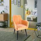 Harvin Chairs Accent Chairs Semi Back Dark Pink Suede Finish Line Pattern, Metal Legs Metal Living Room Chair (Finish Color - Dark Pink, DIY(Do-It-Yourself))