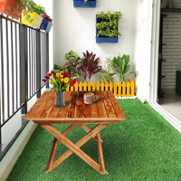 Harvin Chairs Folding Coffee Table Teak Wood X Frame Base Teak Finish Solid Wood Outdoor Table (Finish Color - Teak Finish, Pre-assembled)