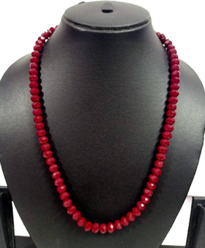 shiny Maroon color tyre shape (8mm) crystal mala for woman & girl
