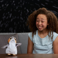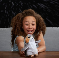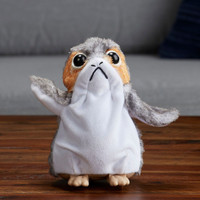 The island which Jedi Master Luke Skywalker chose for his exile was home to these inquisitive and cute bird-like creatures called porgs. You can make this soft plush creature wave and flap its arms, move forward and turn. It also includes sound effects such as tweeting, chirping, and more.