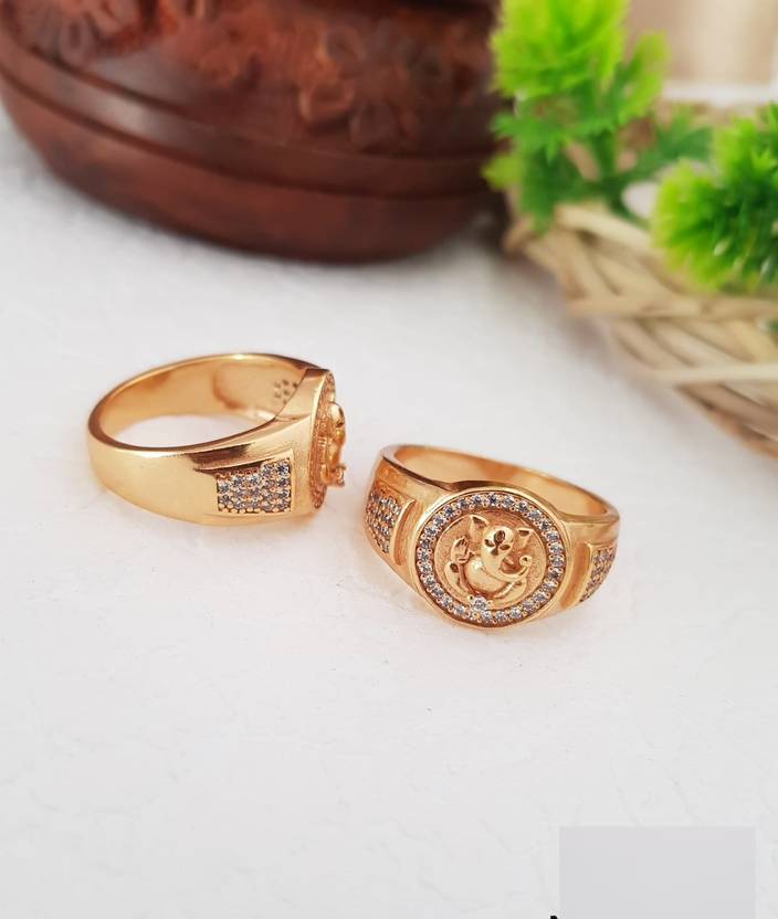 Beautiful Ganesh ji Design Ring For Men & Women Brass, Copper Gold Plated Ring