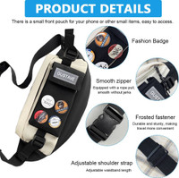 Sporting a fashion badge and a smooth zipper equipped with a rope pull, this bag allows for effortless opening and closing. The frosted fastener is durable and sturdy, ensuring reliable use over time and helping keep belongings secure. This bag also features an adjustable shoulder strap and a waistband with adjustable length, allowing you to find a comfortable and secure fit. These features make carrying this bag convenient, whether worn around the waist or across the body, supporting ease of movement during daily activities or travel.