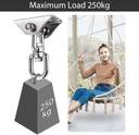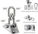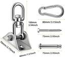HAMMOCK INSTALLATION ACCESSORIES KIT: Celing mounting accessories for installing hammock, swing, sangbag, swing chair, etc. Including swing hanger, M8 carabiner, 2pcs bolts and 2pcs screws.STURDY AND DURBALE: All accessories are crafted with premium high strength 304 stainless steel material, corrosion resistance, strong and sturdy, can be upto 450kg loading max. Safe and reliable ceiling mounting accessories.360 掳 ROTATABLE DESIGN: Flexible 360掳 rotation design allows your hanging hammock can flexible move in any angle without any tangling or twisting, safer to use.EASY TO INSTALL: Can install on a concrete ceiling and solid wooden beam. Comes with 2 hex lag bolts which fit concrete application and 2 screws which fit wood application.WIDE APPLICATION: Ultra strong ceiling mounting kit is perfect for installing hammock, swing, swinging chair, punching bag or yoga strap, etc in porch, balcony, garden, etc.