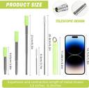 TELESCOPIC & ULTRA-PORTABLE DESIGN: Steel straw expands from 3.8 to 8.3 inches for compact storage, perfect for travel, picnics, or gym use. Includes a keychain ring for easy attachment to bags. 304 STAINLESS STEEL & ECO-FRIENDLY: Steel straw sipper durable, rust-proof, and reusable 304-grade steel straws reduce plastic waste, ideal for smoothies, cocktails, or iced beverages. BUILT-IN HYGIENE FEATURES: Comes with a collapsible straw cleaner brush and silicone straw cover to ensure sanitary use and prevent dust buildup. SILICONE-TIP FOR COMFORT: Soft silicone mouthpiece enhances grip and ensures a comfortable sipping experience, even with hot or cold drinks. CRUISE/TRAVEL ESSENTIALS KIT: Lightweight, leak-proof design with a travel pouch makes it a must-have for eco-conscious travelers or daily commuters.