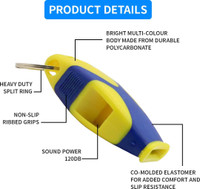 Made with a tough polycarbonate body, this whistle withstands repeated use while resisting impact and surface wear. Additionally, it comes with heavy-duty split-ring attachments and ribbed grips that provide secure handling during activities. Moreover, the co-moulded elastomer enhances comfort and reduces the risk of slipping, even during extended use. Along with this, the lightweight build keeps it comfortable to carry while maintaining strength for long-term reliability.
