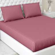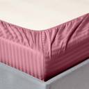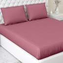 haus & kinder Cotton King Fitted (Elastic) 210 TC Striped Bedsheet (Pack of 1, Roseberry)